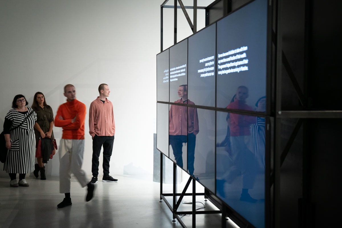 Video-Wall und Medienstationen in einer Sonderausstellung im neuen Bauhaus-Museum in Weimar.